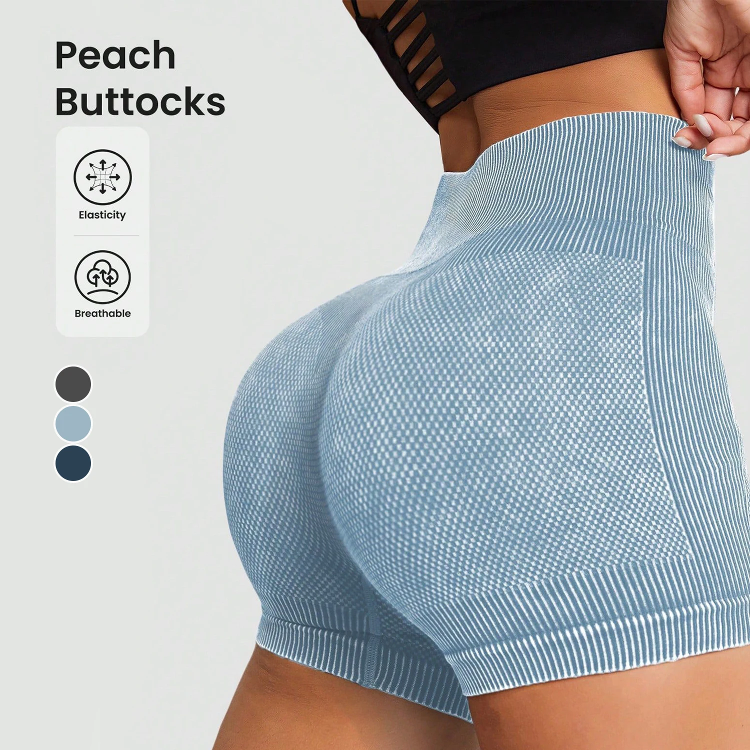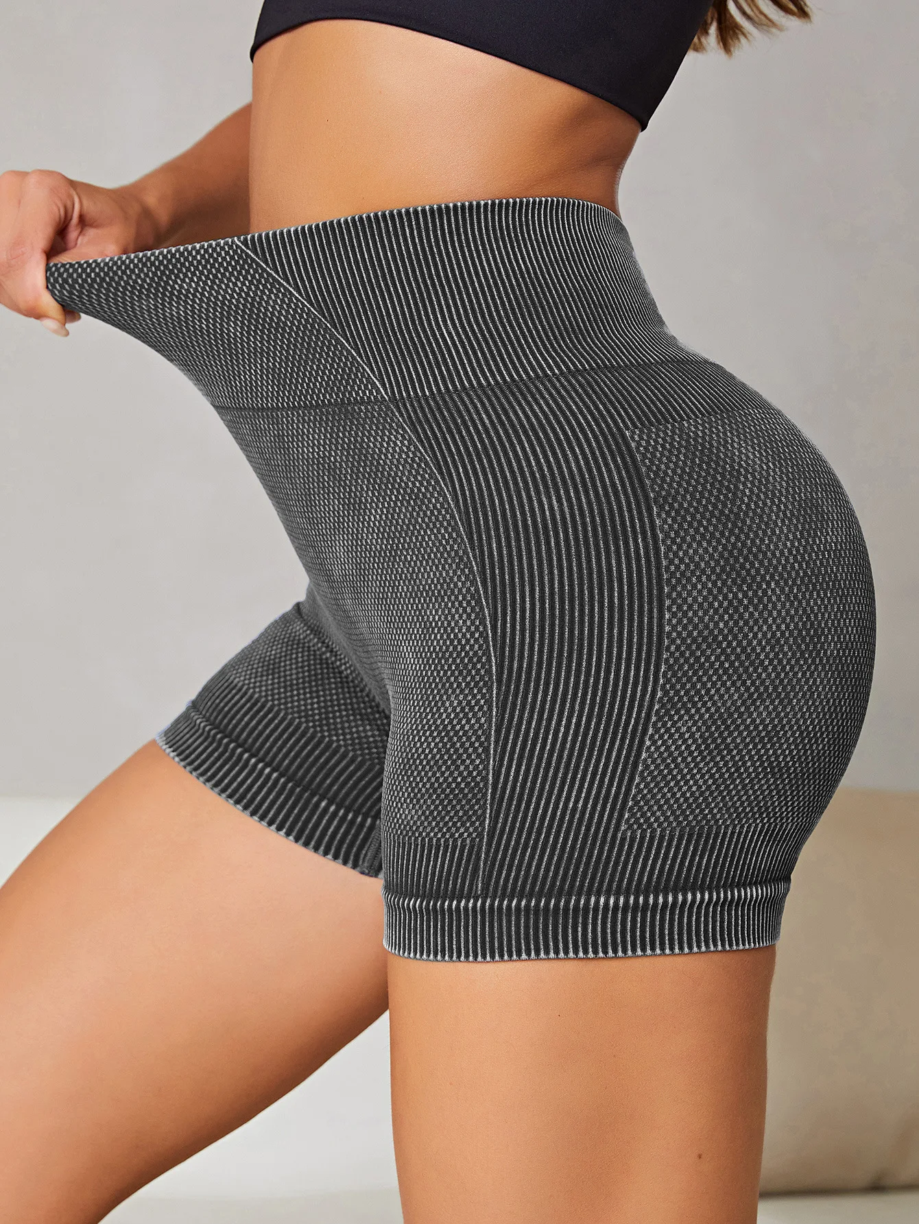 Women's High-Waisted Peach Hip Yoga Shorts Moisture Absorbing High Elasticity Sports Pants Running Fitness Washed Shorts
